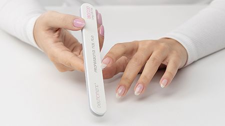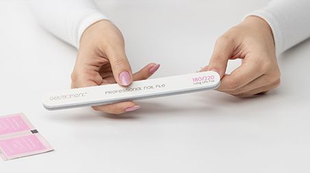 Gently buff and cleanse the natural nail with a gelmoment nail file and cleanser to remove any oils or residue and allow it to dry completely.